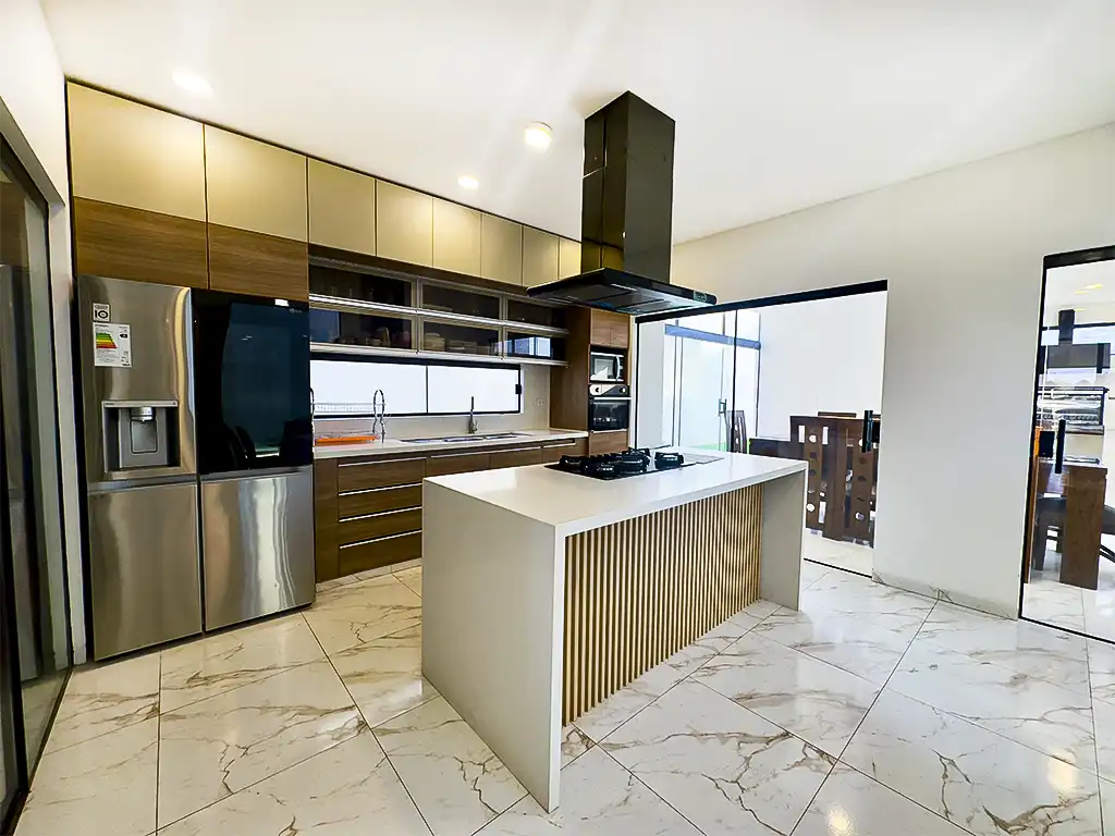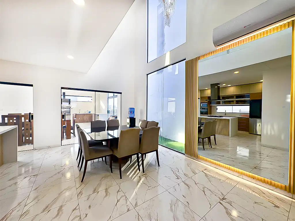 El living comedor con doble altura es perfecto para reuniones y momentos en familia, mientras que la cocina americana con despensa facilita la preparación de deliciosos platos.