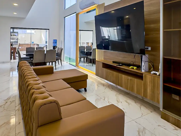 La casa cuenta con 5 dormitorios, incluyendo 1 máster suite y 4 suites, ideales para familias grandes o para aquellos que buscan espacio y privacidad.